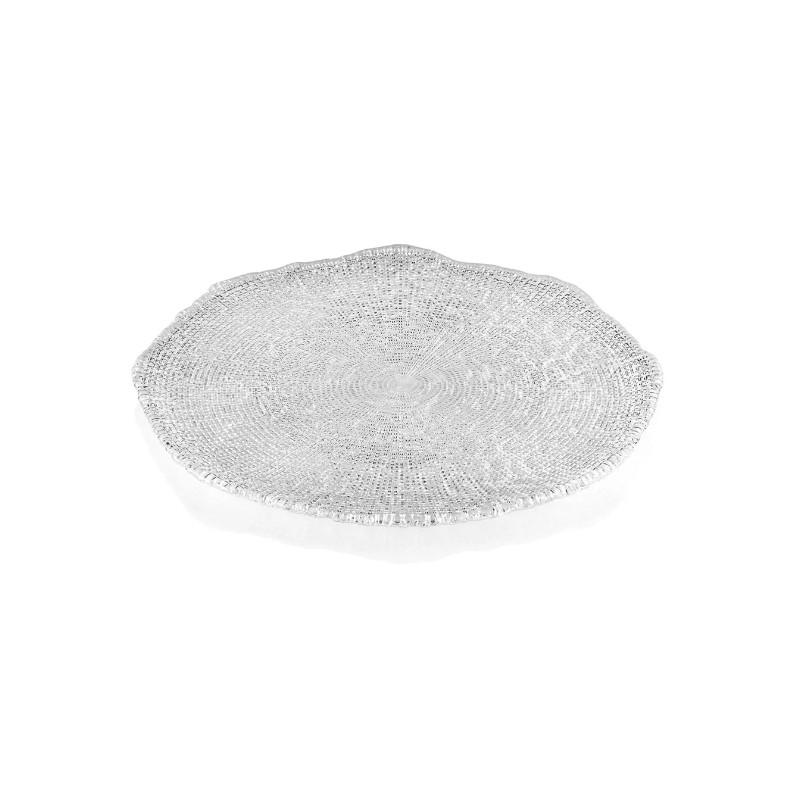 plat à tarte en verre avec relief par le dessous représentant les nervures d'un tronc d'arbre